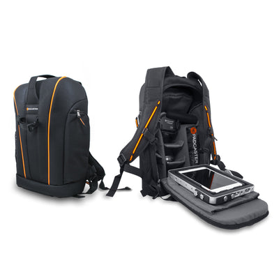 Fully padded with five velcro dividers, removable internal zipper pouch, tripod holder and waterproof cover - the rugged, elegantly designed Padcaster Backpack securely carries your entire mobile studio with ease.
