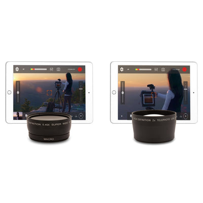 Dramatically increase your iPad’s field of view with the Padcaster Wide Angle/Macro Lens or zoom in close to the action with the Padcaster Telephoto Lens.