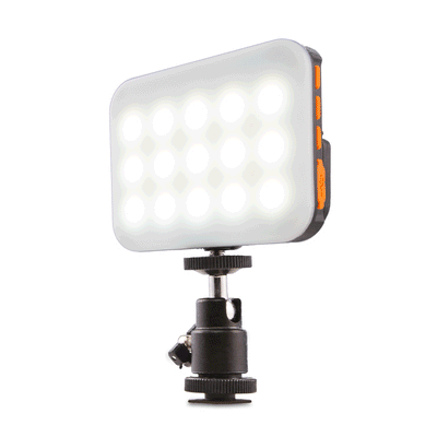 The Padcaster LED Light is a variable color, dimmable light with a surprisingly strong throw. It comes an internal rechargeable battery and an included Cold Shoe Adapter for mounting to the Padcaster Case.