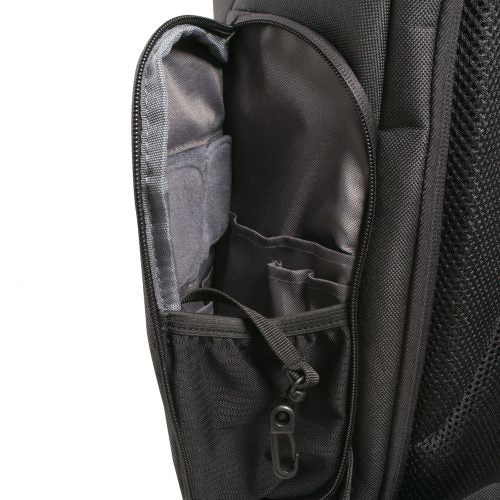 Made from rugged waterproof nylon, the Padcaster Camera Backpack is a fully padded backpack-style camera bag with 5 Velcro dividers, 3 compartments to secure your accessories, and adjustable straps for comfort. The camera bag has a removable zipper pouch for additional storage and mobility. The adjustable strap and hideaway pouch enable you to attach any small tripod to the pack and carry your entire kit in one lightweight rucksack.