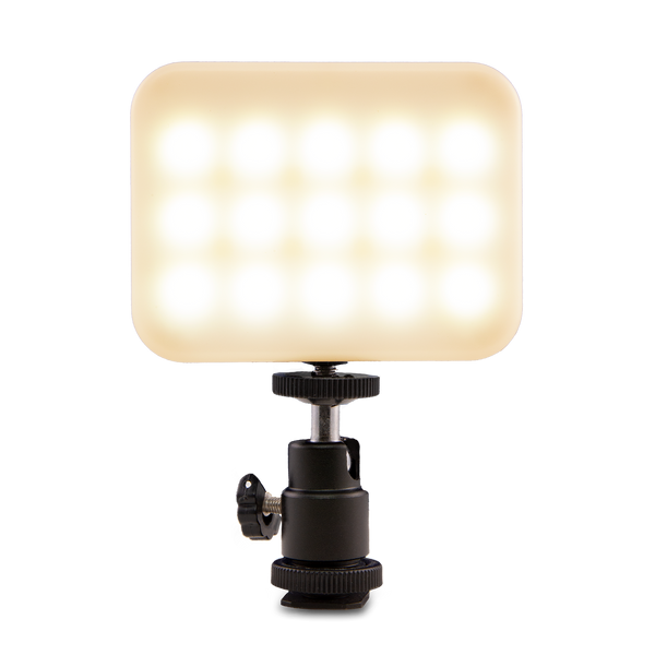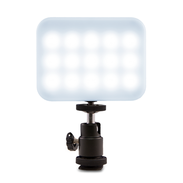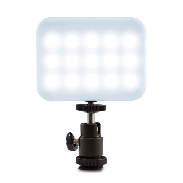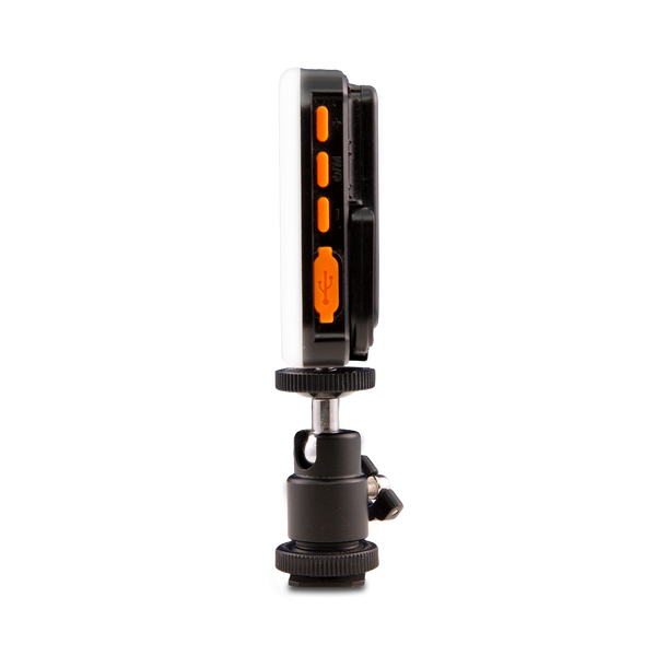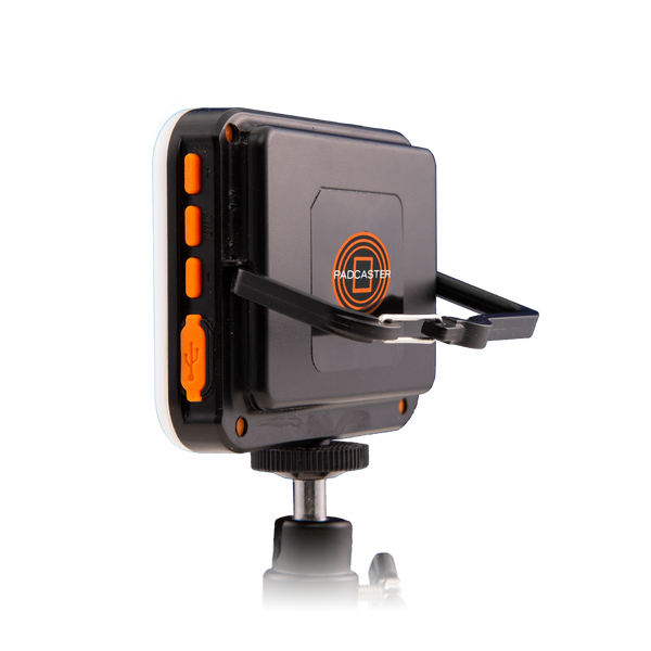 The Padcaster LED Light is a variable brightness, daylight balanced light with a surprisingly strong throw. It accepts AA or Canon Lithium-ion batteries and has a swivel neck for easy positioning. The Padcaster LED Light comes with an included Cold Shoe Adapter for mounting to the Padcaster frame.