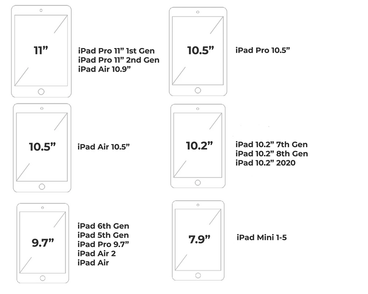 (2017), iPad 6 (2018), iPad Pro 11"
