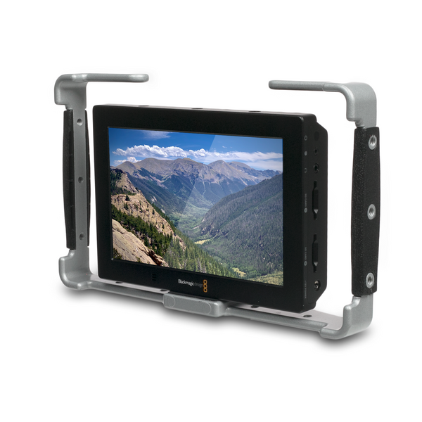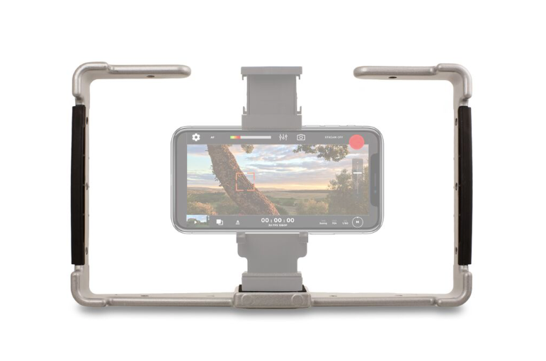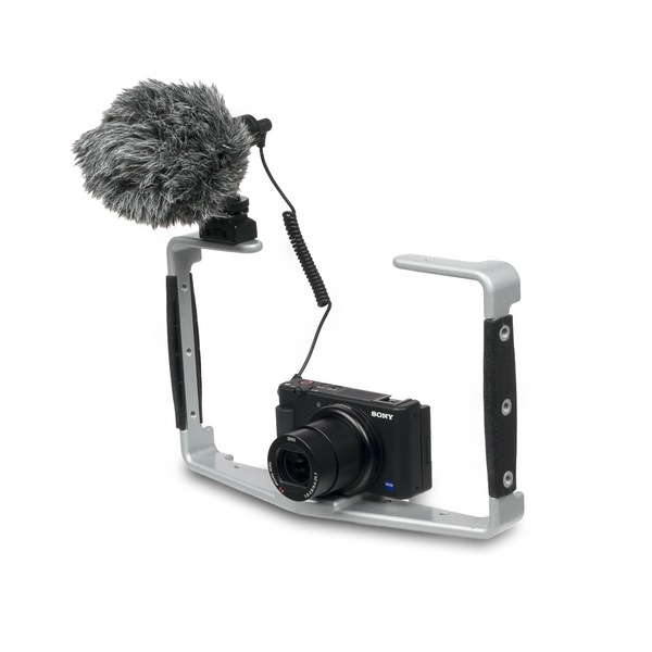 The Padcaster Universal Camera Cage is a super strong, versatile mount for any small to mid-sized camera, field monitor, gimbal, or smartphone mounts like the Padcaster Verse grip. Built out of rugged powder-coat aluminum, the Universal Camera Cage comes with 12 standard 1/4-20 threads for attaching your favorite accessories such as microphones, lights, clamps shoulder straps and more. Padcaster’s unique, integrated, “Floating Dual Tripod Mount” makes it simple to attach a camera inside the cage and a tripod below it with no additional hardware. The rubber-padded mounting area ensures a snug fit and Its two ergonomic hand grips make hand-held video a breeze.