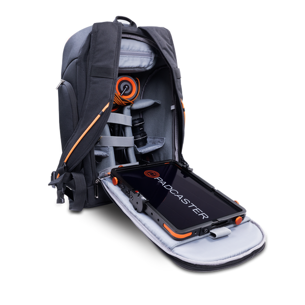 The Padcaster Camera Backpack is made of durable waterproof nylon, features five Velcro dividers and is fully padded to keep all your Padcaster Starter Kit accessories protected and organized.